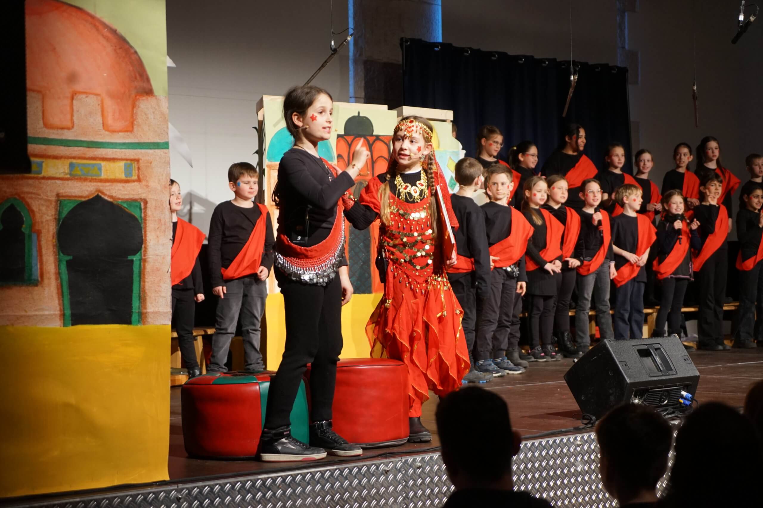Am Donnerstag vor den Osterferien verwandelten die Chorkinder der Brenzschule die Hammerschmiede in Königsbronn in das orientalische Königreich „Rotasia“. Mit der musikalischen Begleitung durch den Pianisten Rolf-Peter Barth erzählten sie unter der Gesamtleitung von Laura Marini die Geschichte des Prinzen Shadi, der von neuen Freunden träumt und dafür alte Ängste überwindet. Mit seinem Mut, etwas Neues zu wagen, überzeugt er bald auch sein Volk davon, neue Wege zu gehen. Bereits am Vormittag durften die Kindergartenkinder, sowie die Bewohnerinnen und Bewohner der Senioren-residenzen und die Grundschulkinder die erste Aufführung erleben, während am Abend die breite Öffentlichkeit die zweite Vorstellung genoss. In beiden Darbietungen gelang es den Mitwirkenden, das Publikum mit ihrer Spielfreude sowie dem harmonischen Zusammenspiel aus Gesang, Schauspiel und Musik zu begeistern.